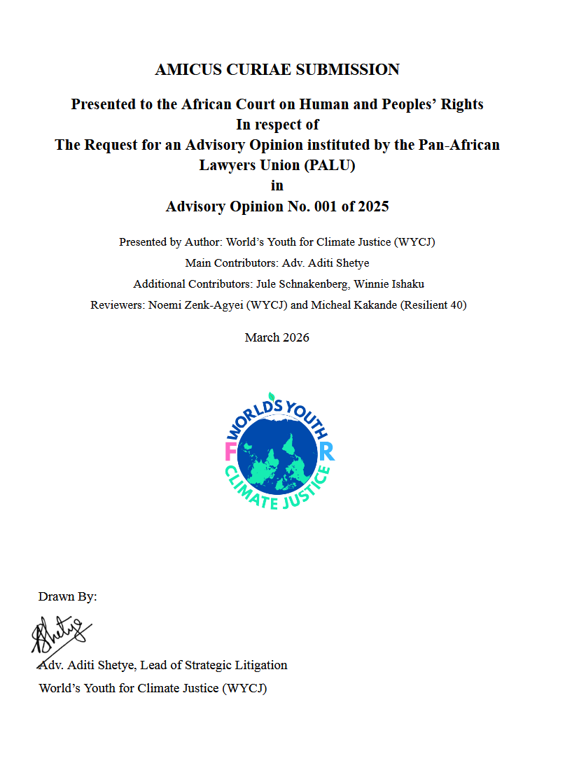 On 30 March, 2026, World’s Youth for Climate Justice has submitted an amicus curiae and an application for leave to participate as amicus curiae to the African Court of Human Rights in which we share our views on some of the questions of the advisory opinion request submitted by PALU.